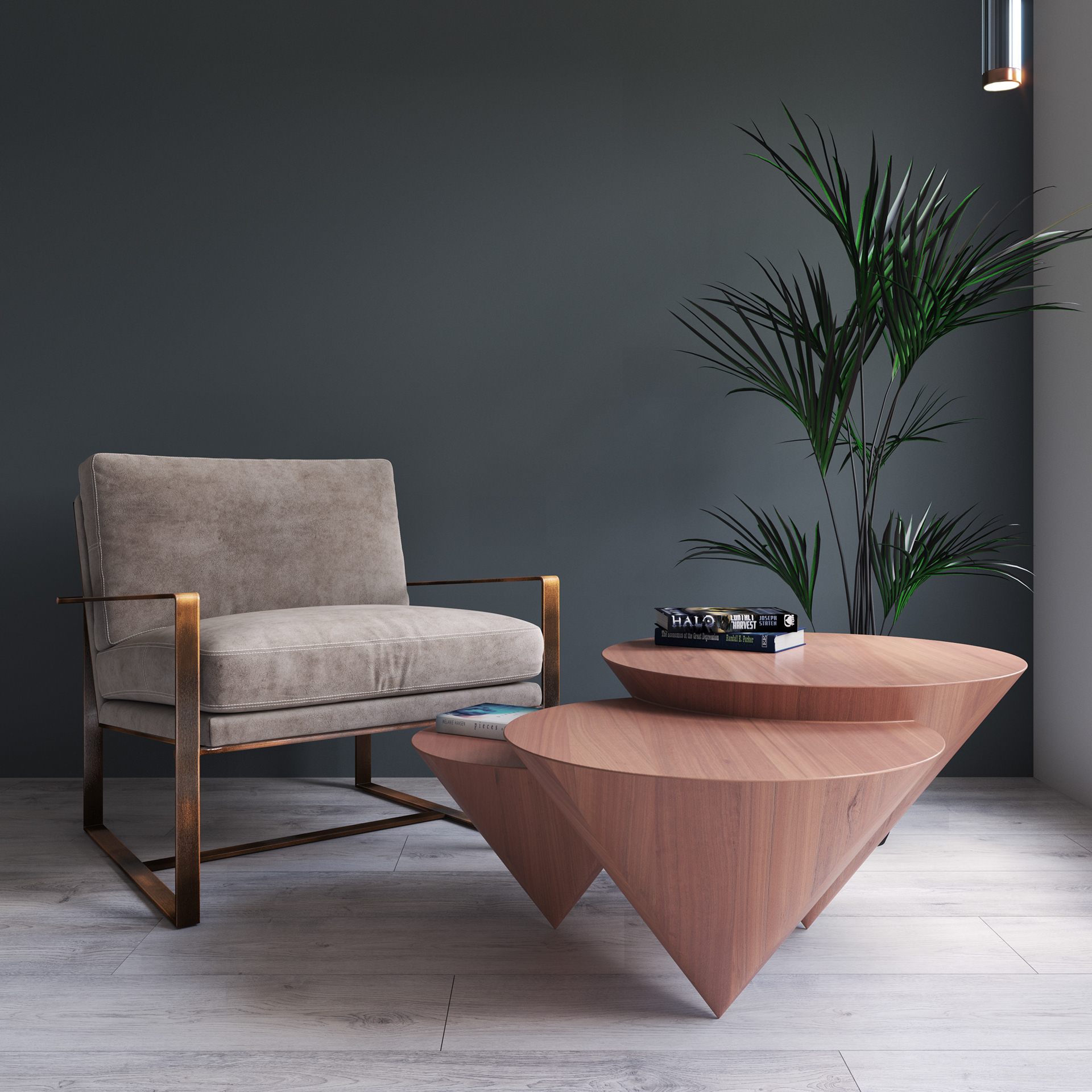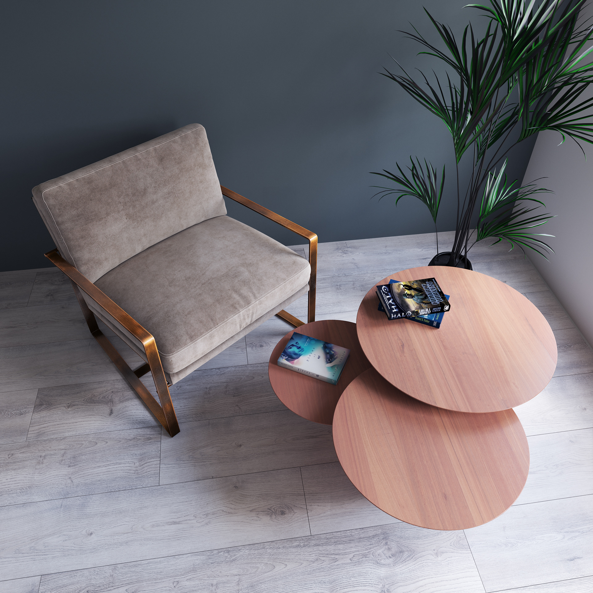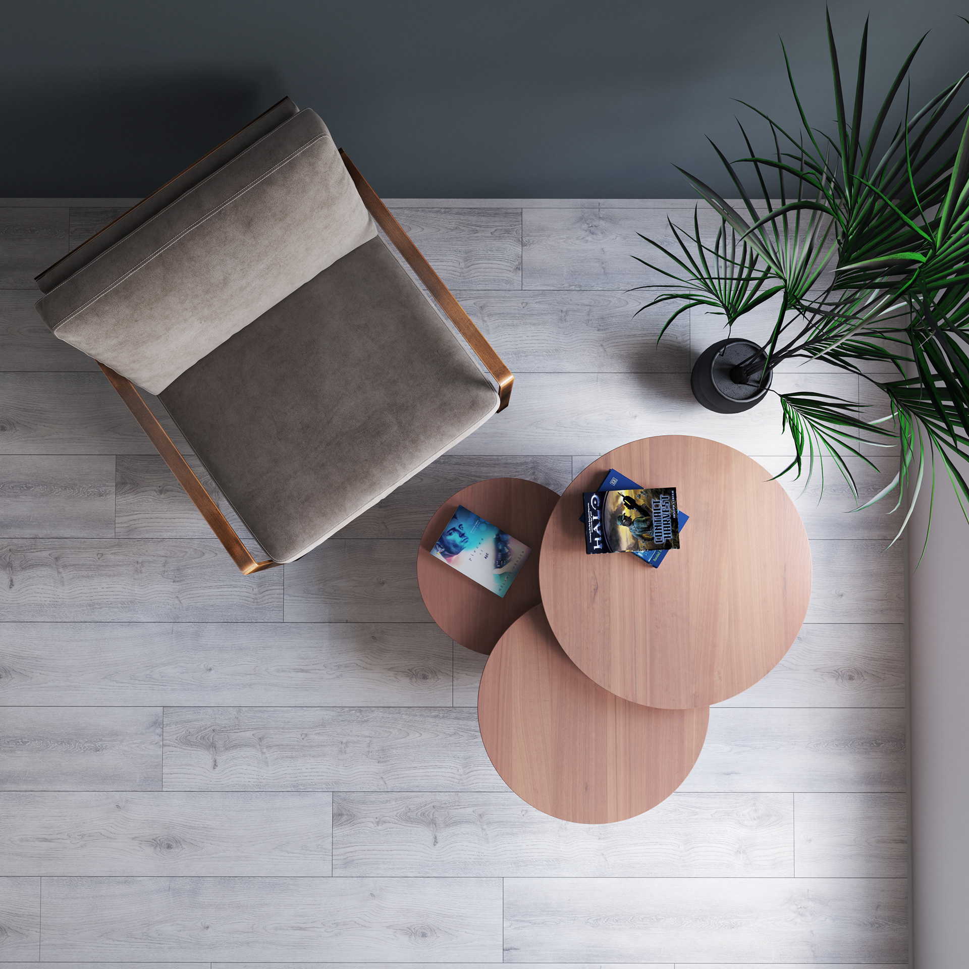 Threeble is actually a composition of three small tables of different sizes, interlocked to form a harmonious system in perfect balance.